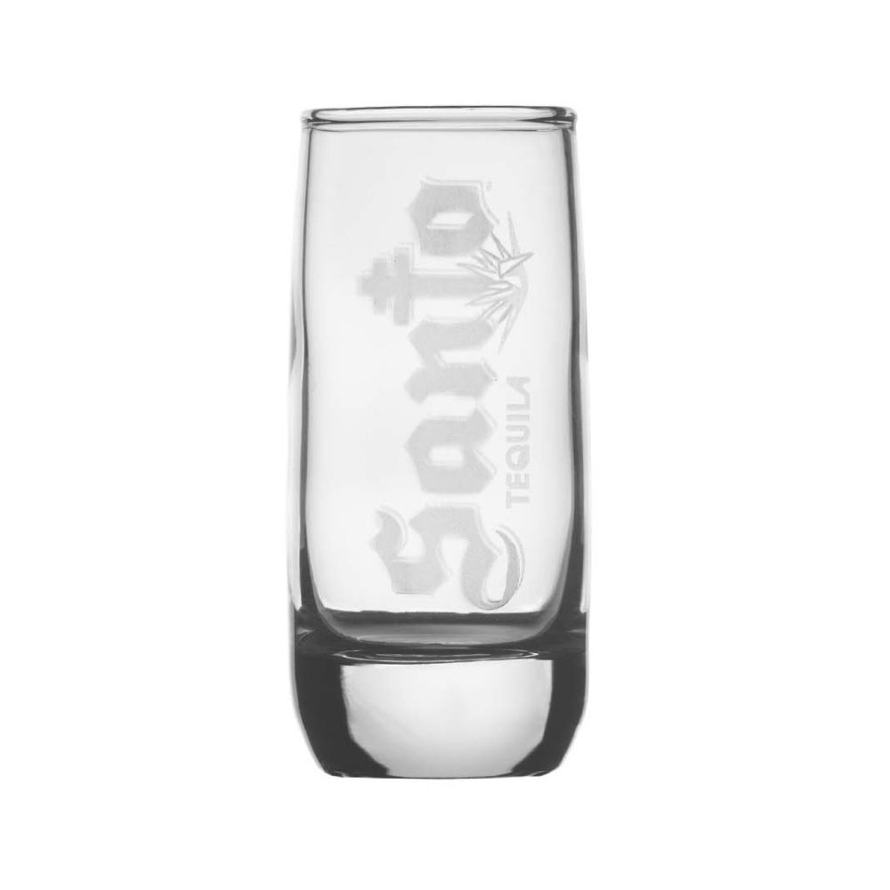 Arcoroc clear 2oz shot glasses with Santo Tequila logo laser engraved.